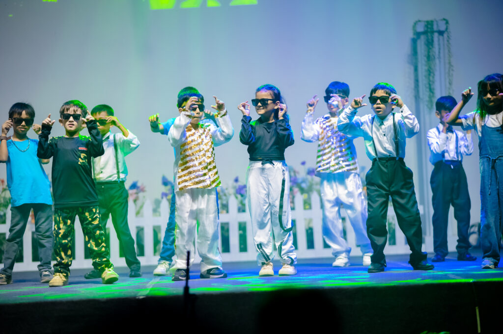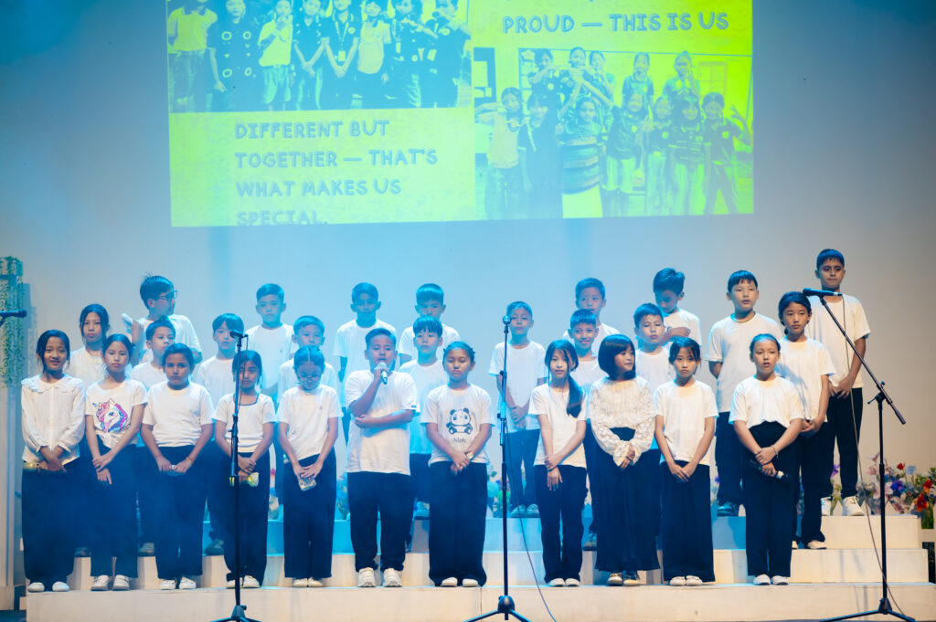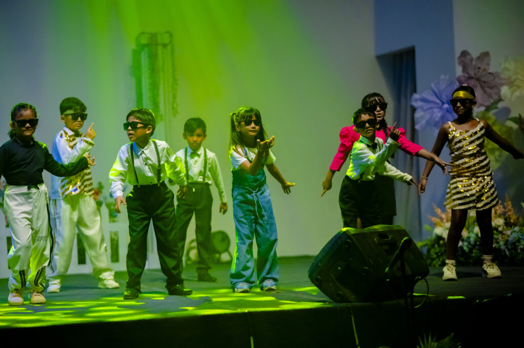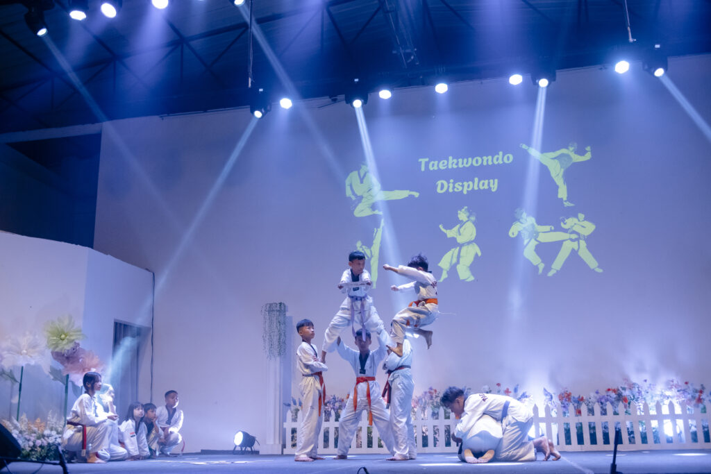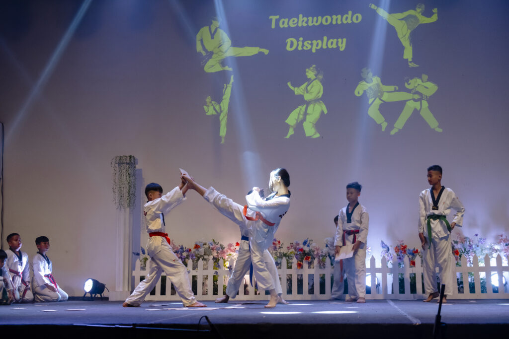 Continuing the performances, Class 5A and 5B sang “Something Just Like This,” after which Class 1 charmed the audience with their delightful play, “Dream of the Good Dragon.” The Taekwondo students then captivated everyone with a powerful and disciplined demonstration. Then there was a vibrant Dance Medley by Class 3, followed by a heartfelt rendition of “Saving Grace” by Class 9. Students of Class 2 brought high energy to the stage with “Evolution of Bollywood Dance,” and Class 4B presented the powerful song “This Is Me.” The Vocal Class students added further musical charm to the evening with their presentation.