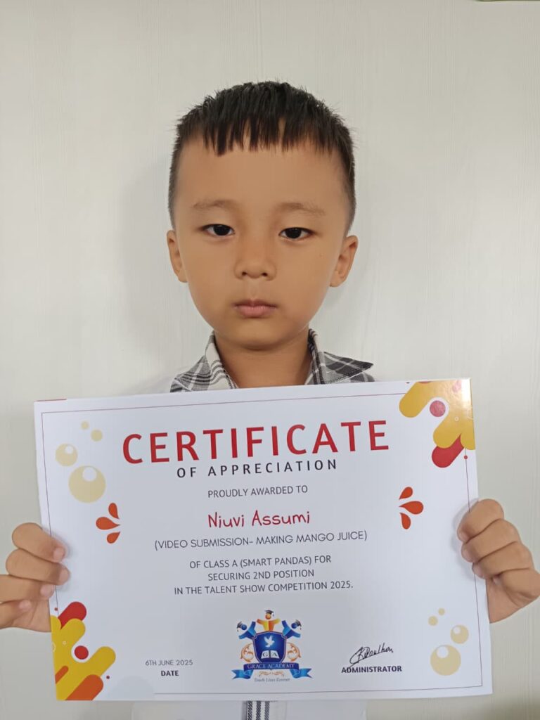 🥇 1st Position: Ninuvi A Awomi – Poem Recitation and Math Addition